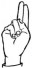 На ћирилици написано ЛЕНА ЦАПУРЕЛОВИЋ састоји се из 15 слова [?]. Исписано ћириличном једноручном азбуком за глувонеме: